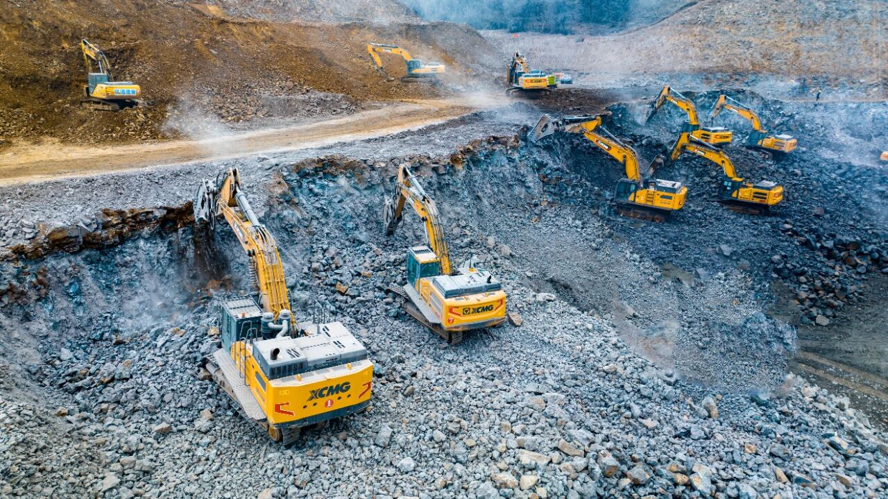 為確保工程順利推進、搶抓冬季施工黃金期,施工方經過多次研討優化施工方案,最終選定徐工挖掘機承擔本次場平核心任務。目前,現場已陸續進駐14臺徐工挖掘機,全面包攬山體玄武巖破碎及土石料裝車等關鍵工序,全力攻堅約300萬方的工程總量。據悉,滁州部分施工區域地質條件復雜,多為堅硬玄武巖,對施工設備的效率與可靠性提出極高要求,而徐工XE650GK等明星機型憑借出色性能成為攻堅主力。其中8臺XE650GK搭配215破碎錘,依托獨有的破碎多級調頻控制技術,高效破解高硬度巖石施工難題,每日保底破碎玄武巖1500噸以上,輕料作業日產量可達2000至3000噸,且油耗控制在40L左右,實現高效與節能雙贏;徐工380、335等機型則協同開展土石方挖裝作業,搭配礦山專用鏟斗,以靈活操作、穩定底盤和優異的挖裝效率,成為施工現場的“得力干將”。