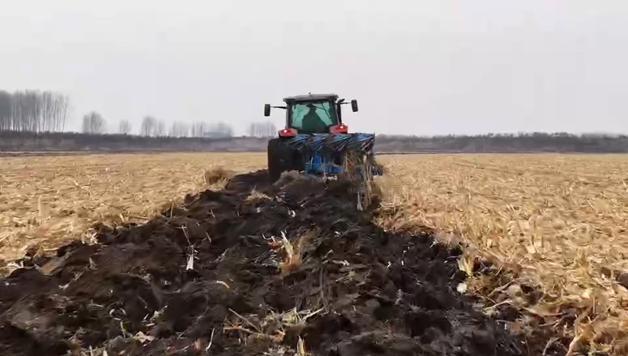 這臺動力換向拖拉機動力強勁,配備大馬力發動機,扭矩儲備大,面對德惠地區黑土地深厚的耕層,依然游刃有余。搭載450液壓翻轉犁,作業幅寬大,入土角度精準。隨著拖拉機沉穩前行,犁鏵整齊地將土壤翻轉,黑土層如波浪般翻開,覆蓋嚴密、溝底平整,徹底打破了犁底層。