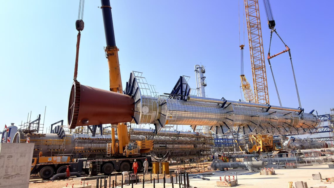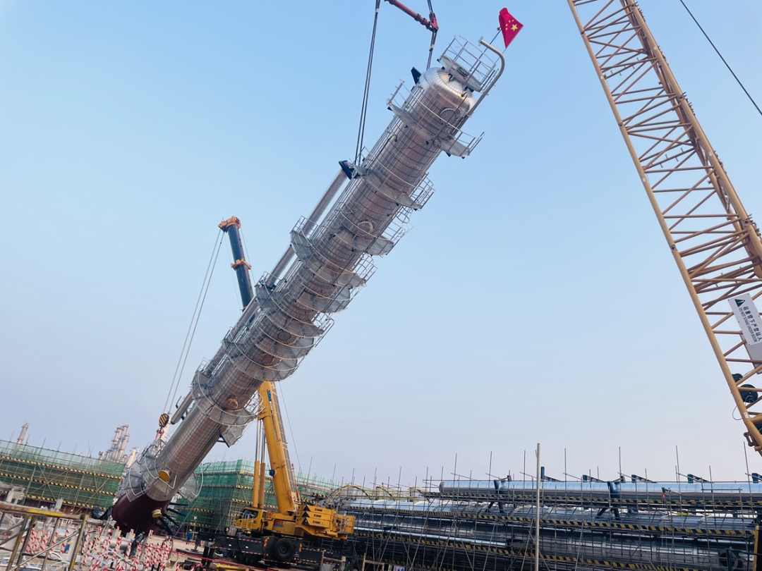 這座石化裝置的“擎天立柱”騰空而起,如藝術品般嵌入預定位置,全程零偏差、零風險。這不僅是設備安裝的里程碑,更是中國制造實力的巔峰展現!
