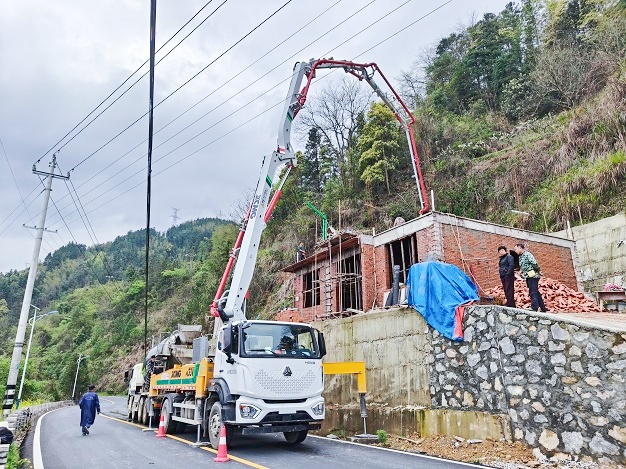 近日,湖南婁底新化縣一處民房建設(shè)現(xiàn)場(chǎng),一臺(tái)徐工HB33V燃油泵車格外引人注目。當(dāng)天需澆筑18方C30混凝土,面對(duì)鄉(xiāng)鎮(zhèn)民房場(chǎng)地狹窄、道路崎嶇的難題,HB33V憑借占地面積小、臂架靈活的優(yōu)勢(shì)輕松進(jìn)場(chǎng),33米臂架在有限空間內(nèi)伸展自如,精準(zhǔn)布料,不到半天便高效完成澆筑任務(wù)。